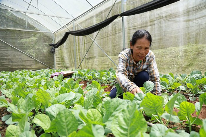 โครงการพัฒนาพื้นที่สูงห้วยเป้า พื้นที่รวม 7 ไร่ แห่งนี้ ได้รับการปรับใช้ตามแนวคิดเกษตรอินทรีย์อย่างจริงจัง โดยมีโรงเรือนทั้งหมด 14 หลัง ใช้ปลูกผักตามฤดูกาล เช่น ผักฮ่องเต้ กวางตุ้ง คะน้า ฯลฯ ผลผลิตที่เก็บเกี่ยวได้ทุกวันจะถูกคัดแยก ตัดแต่ง ตั้งแต่เช้าตรู่ และส่งต่อไปยังโรงคัดบรรจุ ห้องเย็น ก่อนขนส่งไปยังปลายทางที่จังหวัดเชียงใหม่ภายในวันถัดไป