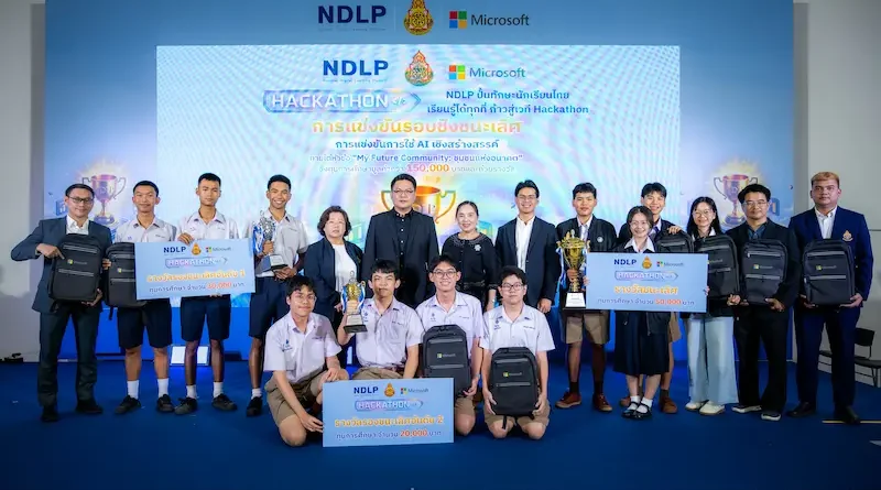 กรุงเทพฯ – 21 เมษายน 2569 – สำนักงานคณะกรรมการการศึกษาขั้นพื้นฐาน (สพฐ.) ผนึกกำลัง บ. ไมโครซอฟท์ (ประเทศไทย) เดินหน้าเชิงรุก ยกระดับระบบการศึกษาไทยเข้าสู่ยุคใหม่ สร้างโอกาสการเรียนรู้ทักษะดิจิทัลและ AI ให้แก่เยาวชน ผ่านแพลตฟอร์มการศึกษาระดับชาติ หรือ National Digital Learning Platform (NDLP) คิกออฟโปรเจ็คท์แรกอย่างเป็นรูปธรรม จัดการแข่งขัน AI Hackathon ภายใต้หัวข้อ “My Future Community – ชุมชนแห่งอนาคต” ชิงทุนการศึกษากว่า 150,000 บาท ซึ่งถือเป็นก้าวแรกของความร่วมมือ โดยมุ่งเปิดโอกาสให้นักเรียนระดับมัธยมศึกษาตอนปลายจาก 1,018 โรงเรียนนำร่อง ทั่วประเทศที่ใช้แพลตฟอร์ม NDLP ได้นำทักษะ AI ระดับโลกมาคิดค้นแนวทางแก้ไขปัญหาจริงในชุมชนของตนเอง และคัดเลือกจนเหลือ 8 ทีมสุดท้ายเข้าสู่รอบชิงชนะเลิศ เพื่อพัฒนาทักษะการคิดวิเคราะห์ การแก้ปัญหาเชิงสร้างสรรค์ใน Hackathon Workshop เรียนรู้ในการสร้าง pitch deck ไอเดียการแก้ไขปัญหาและสร้าง Smart Community รวมถึงได้รับคำแนะนำจากผู้เชี่ยวชาญอย่างใกล้ชิดก่อนถึงวันแข่งขันรอบชิงชนะเลิศ โดย สพฐ.และไมโครซอฟท์ ตั้งเป้าผลักดันให้เกิดการเรียนรู้ดิจิทัลและ AI ทั่วประเทศ ด้วยแผนขยายการเข้าถึงไปยังโรงเรียนในสังกัด สพฐ. ให้ครอบคลุมทั้งหมดกว่า 29,000 โรงเรียนให้ได้ภายในปลายปี 2569 เพื่อให้เยาวชนไทยทุกคน ไม่ว่าจะอยู่ที่ใด มีโอกาสเท่าเทียมกันในการเรียนรู้และสร้างสรรค์ด้วย AI