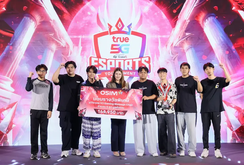 ภายใต้แคมเปญ “The Throne for Every Gamer” OSIM ผนึกกำลังกับ True5G eSports Tournament สร้างปรากฏการณ์ครั้งสำคัญให้วงการอีสปอร์ตไทย ด้วยการเปิดตัว uThrone V2 Gaming Massage Chair อย่างเป็นทางการครั้งแรกในประเทศไทย บนเวทีรอบชิงชนะเลิศของการแข่งขัน True5G eSports Tournament บรรยากาศการแข่งขันสุดเข้มข้น ไฮไลต์พิเศษของงาน คือการมอบ uThrone V2 Gaming Massage Chair มูลค่า 164,950 บาท ให้แก่ผู้ชนะการแข่งขันเกม ROV ในฐานะเกมเมอร์กลุ่มแรกของประเทศที่ได้ครอบครองนวัตกรรมเก้าอี้เกมมิ่งผสานระบบนวดอัจฉริยะ สะท้อนแนวคิดการยกระดับประสบการณ์การเล่นเกมไปอีกขั้นด้วยเทคโนโลยีฟื้นฟูร่างกายแบบเรียลไทม์ระหว่างการแข่งขัน เพื่อให้ผู้เล่นสามารถรักษาฟอร์มการเล่นได้อย่างต่อเนื่องและมีประสิทธิภาพสูงสุด